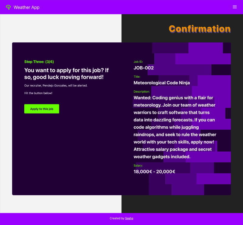 Inspired by the multitude of complex forms that users have to fill out when applying for a job, I created this simple app that expresses how I believe the process should be.