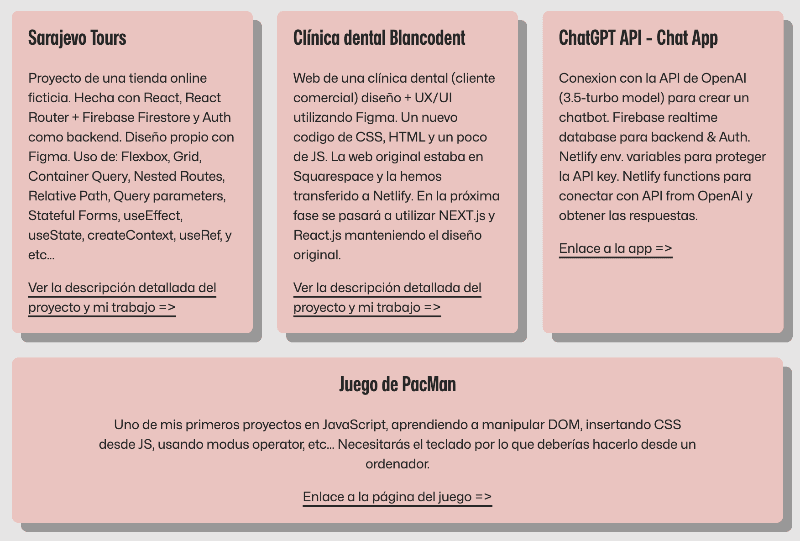 Except for that and the CSS reset part, all the code has been written by me. Reading the documentation and figuring things out on my own. Surely that's why there are beginner mistakes, but the website works well and I have learned a lot.